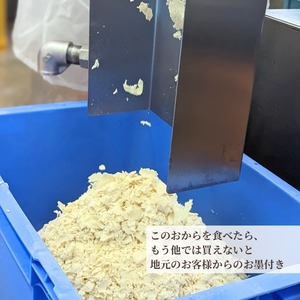 厳選の国産大豆からでる、新鮮な〝おから〟と〝豆乳〟をこだわりの材料と合わせた直送便でお届けします。