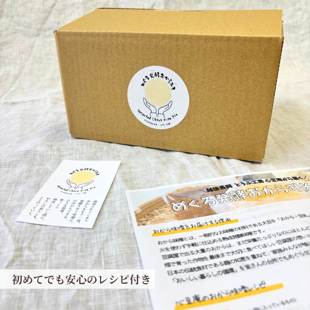 「めぐる発酵おからみそキット」は、破棄されるおからを再利用して作る手づくりお味噌です。